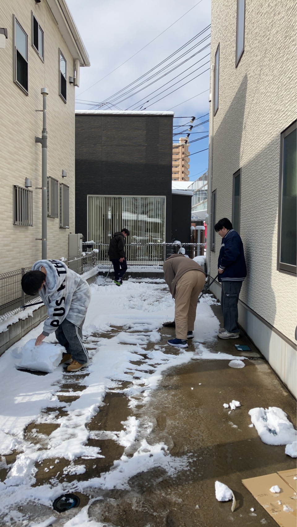 雪の中、元気に登校してくれた生徒たち、朝は皆で雪遊び(という名の雪かき?!)。